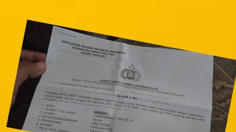 Takalar,Sul-Sel/Harian Online News– Merasa terusik dilecehkan profesinya dimedsos, Pengacara muda asal takalar laporkan salah satu pengguna facebook Kepolres Takalar karena diduga menghina profesinya sebagai seorang pengacara, Dengan nomor Laporan Polisi : STTPL/B/32/II/2023/SPKT/POLRES TAKALAR/POLDA SULAWESI SELATAN tertanggal 02 Februari 2023 Pukul 16.30 Wita, telah melaporkan tentang peristiwa Pidana UU Nomor 1 Tahun 1946 Tentang KUHP Pasal 311