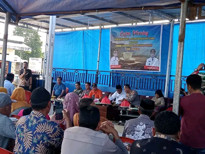 Takalar / Harian Online News – Kapolres Takalar AKBP Gotam Hidayat, S.I.K., M.Si menghadiri kegiatan Coffee Morning bersama Forkopimda Kabupaten Takalar yang diselenggarakan Pemerintah Kecamatan Polut di Dusun Lerekang, Desa Pa’rappunganta, Kecamatan Polut, Kabupaten Takalar. Jum’at (10/03/2023) Pagi.