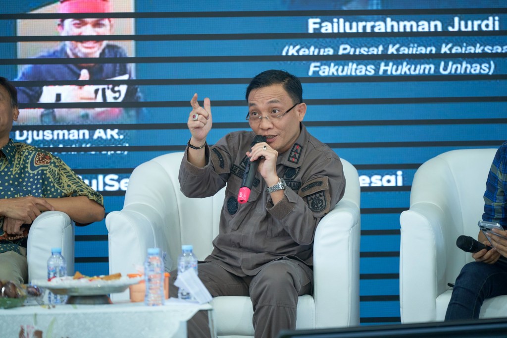 Moderator pada Kegiatan Forum Grup Discussion (FGD) Fajlurrahman Jurdi (Ketua Pusat Kajian Kejaksaan Unhas). Para Penangggap yaitu Dekan FISIP unhas Dr.Safriadi, Dekan fak.hukun bosowa prof dr. Ruslan, Ketua PW Muhammadiyah Muh.syaiful saleh, Ketua pw NU prof dr MARLANG, Ketua PGI diwakili sekum Pdt. Yohanis metris, Direktur pusat kajian anti korupsi Unhas M Aris Munandar, SH, MH, Pusat kajian Kejaksaan Muslim Hak, Direktur ACC Ali Asrani dan Sekertaris Walhi.