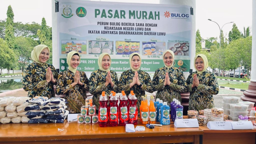 Haŕianonline.news – Luwu, SulSel, Menyalami masyarakat melalui kegiatan Pasar Murah adalah bentuk apresiasi yang patut di contoh, apalagi kegiatan Pasar Murah yang digiatkan di masa Ramadhan , karena selain membantu masyarakat tentunya bernilai ibadah, seperti yang saat in tengah dilaksanakan oleh Kejaksaan Negeri Luwu bersama Ikatan Adhyaksa Dharma Karini (IAD) daerah Luwu