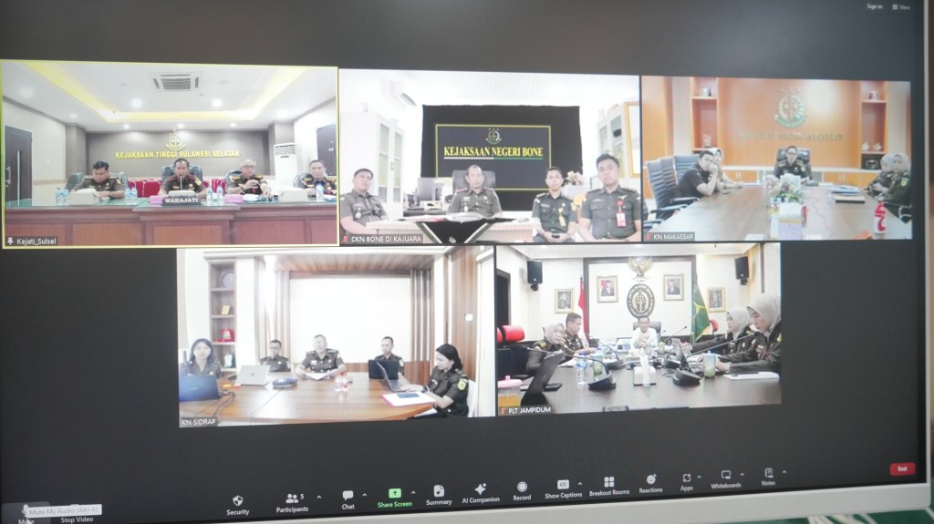Ekspose Perkara untuk Penghentian Penuntutan dilakukan secara virtual yang dihadiri oleh Plt. Jaksa Agung Muda Tindak Pidana Umum (JAM PIDUM) Leonard Eben Ezer Simanjuntak, S.H. M.H., Direktur Tindak Pidana Terhadap Orang dan Harta Benda, Nanang Ibrahim Sholeh, S.H., M.H., Wakil Kepala Kejaksaan Tinggi Sulawesi Selatan Zet Tadung Allo, S.H,M.H, Plt Asisten Tindak Pidanan Umum Kejati Sulsel Jabal Nur, S.H.,M.H., Kasi Orang dan Harta Benda Bidang Pidum Kejati Sulsel, Kasi Penkum, Plt Kepala Kejaksaan Negeri Sidrap, Plt Kepala Kejaksaan Negeri Makassar dan Kepala Cabang Kejaksaan Negeri Bone di Kajuara beserta jajaran.