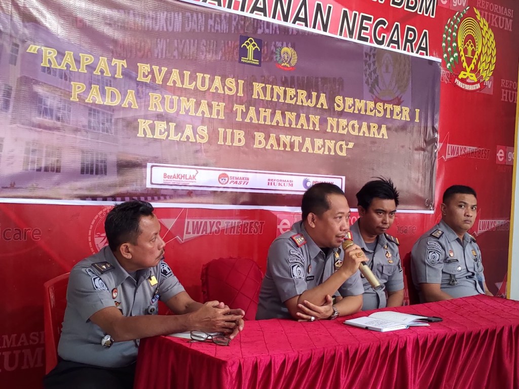 Dalam rapat Ince Muh.Rizal Kepala Rutan Kelas IIB Bantaeng menyampaikan beberapa poin-poin penting sebagai fokus pembahasan agenda rapat evaluasi Capaian Kinerja Semester I di lingkungan Rutan Kelas II B Bantaeng yang digelar ini, adapun poin-poin tersebut antara lain :