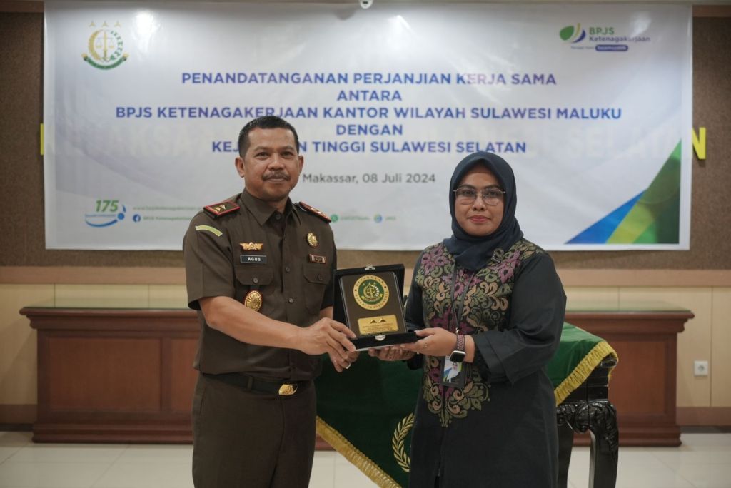 Senin (08/07/2024) bertempat di Kantor Kejaksaan Tinggi Sulawesi Selatan, Kajati Agus Salim menandatangani Perjanjian Nota Kesepahaman/Memorandum of Understanding (MoU) bersama BPJS Ketenagakerjaan Wilayah Sulawesi Maluku.