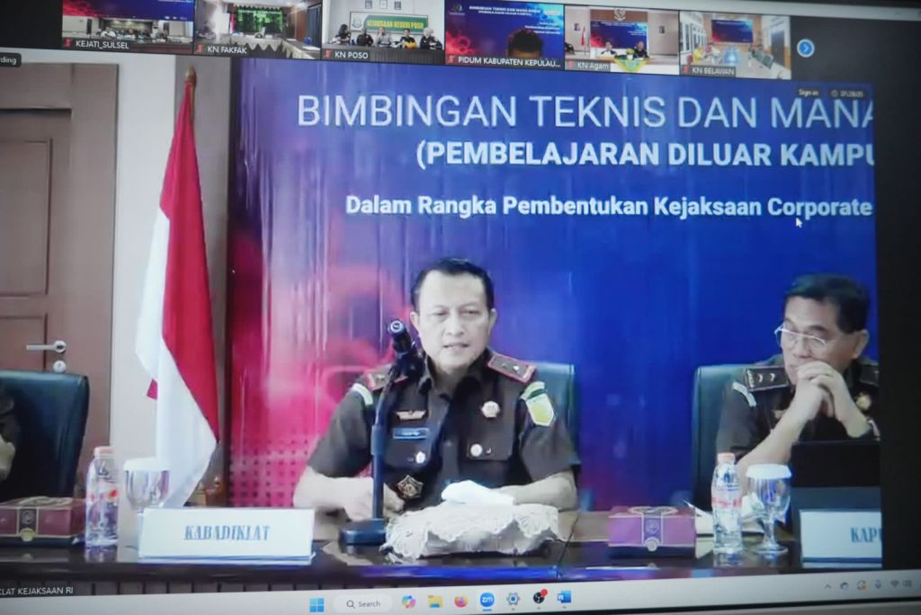 Rabu (11/09/2024) bertempat di Aula Lantai 2 Kejati Sulsel, Wakil Kepala Kejaksaan Tinggi Sulawesi Selatan, Dr. Teuku Rahman, SH., MH. didampingi para asisten, para koordinator dan kasi mengikuti Pre Launching Corporate University pada Badan Diklat Kejaksaan RI secara daring lewat aplikasi zoom meeting.