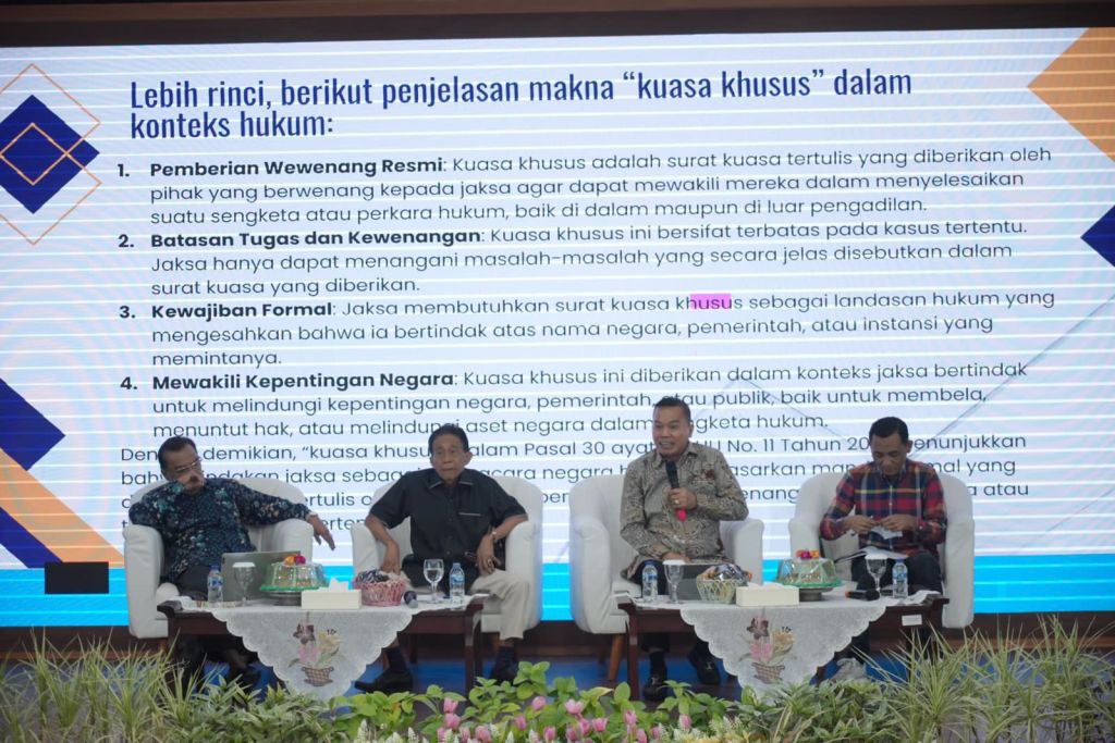 Kepala Kejaksaan Tinggi Sulawesi Selatan, Agus Salim membuka kegiatan Focus Group Discussion (FGD) dengan tema “Quo Vadis Eksistensi Jaksa Pengacara Negara” di Aula Lantai 8 Kejati Sulsel, Rabu (9/10/2024).