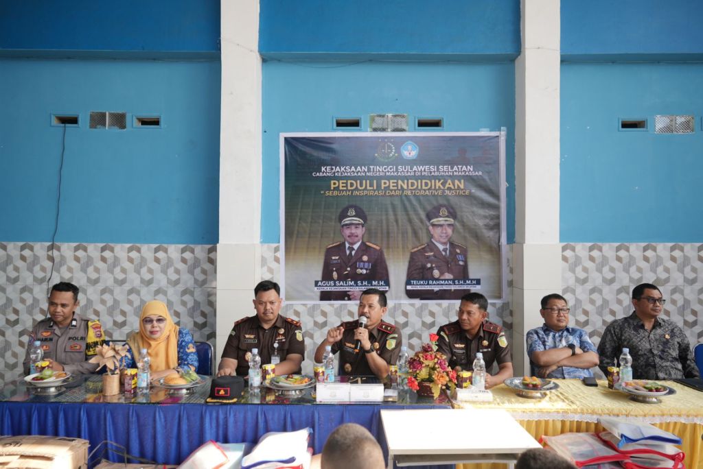 KEJATI SULSEL, Makassar – Kejaksaan Tinggi Sulawesi Selatan bersama Cabang Kejaksaan Negeri Makassar di Pelabuhan Makassar menggelar kegiatan Peduli Pendidikan dengan tema “Sebuah Inspirasi dari Restorative Justice” di SMPN 22 Makassar, Kelurahan Ujung Pandang Baru, Kecamatan Tallo, Senin (11/11/2024).