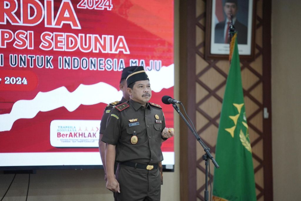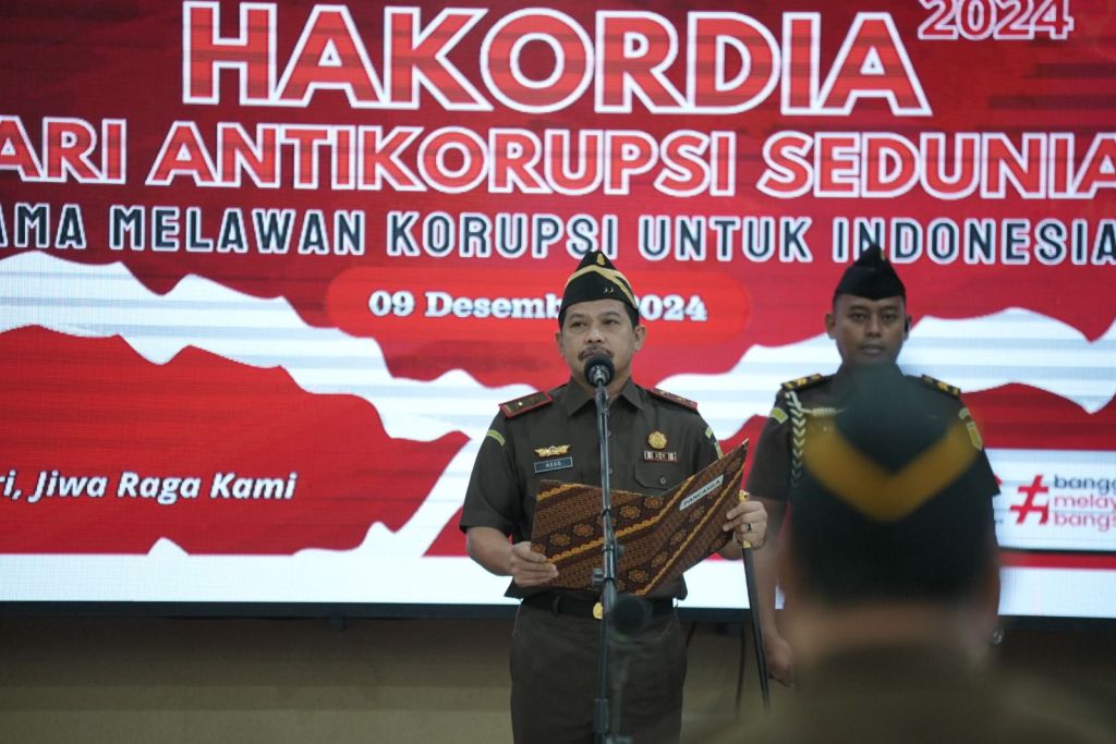 Kajati Sulsel, Agus Salim membacakan amanat Jaksa Agung RI ST Burhanuddin pada Upacara Peringatan Hari Antikorupsi Sedunia Tahun 2024. Tema Hakordia Tahun 2024 ini selaras dengan Asta Cita Presiden RI untuk memperkuat reformasi politik, hukum dan birokrasi serta pencegahan dan pemberantasan korupsi.