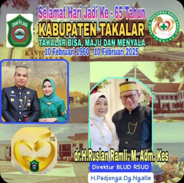 Selamat Hari Jadi Takalar Ke-65 Ditulis olehabanggjul1 Feb 20258 Feb 2025Diposkan padaNews, Sulawesi Selatan, Ucapan SelamatTag:Sulawesi Selatan, Takalar, Ucapan Selamat Hari Jadi Ke - 65 Tahun Kabupaten Takalar ( 10 Februari 1960 -10 Februari 2025 ) 10 Februari 1960 -10 Februari 2025 SHARE Bagikan pada Facebook(Membuka di jendela yang baru) Facebook Bagikan ke X(Membuka di jendela yang baru) X Bagikan ke Telegram(Membuka di jendela yang baru) Telegram Bagikan ke WhatsApp(Membuka di jendela yang baru) WhatsApp Terkait