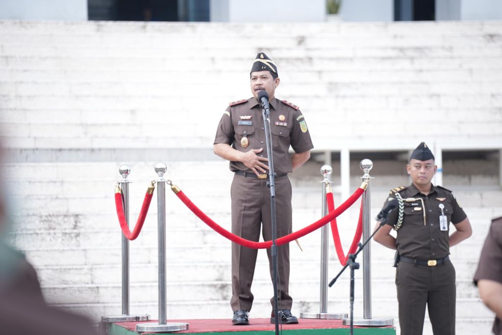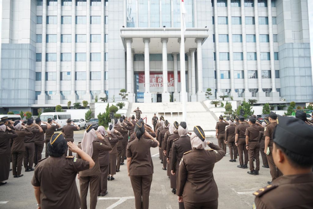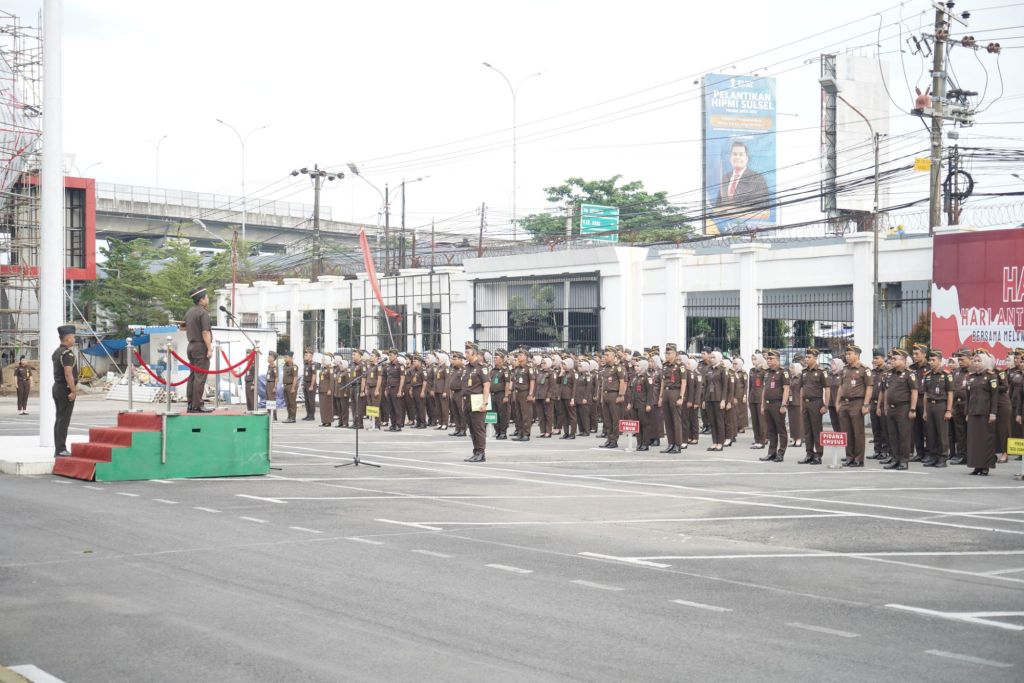 KEJATI SULSEL, Makassar—Kepala Kejaksaan Tinggi Sulawesi Selatan, Agus Salim memimpin Apel Pagi, Senin (3/2/2025) di Halaman Kantor Kejati Sulsel. Apel ini diikuti para asisten, koordinator, kepala seksi, jaksa fungsional dan pegawai Kejati Sulsel.