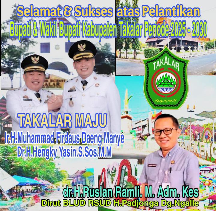 Ucapan Selamat dan Sukses Ditulis olehabanggjul20 Feb 202520 Feb 2025Diposkan padaADVETORIAL, News, Sulawesi Selatan, Takalar, Ucapan SelamatTag:Sulawesi Selatan, Takalar, Ucapan Selamat dan Sukses atas Pelantikan Bupati dan Wakil Bupati Takalar Periode 2025-2030 PELANTIKAN BUPATI & WAKIL BUPATI KABUPÀTEN TAKALAR PERIODE 2025-2030 ( tanggal 20 Februari 2025) SHARE Bagikan pada Facebook(Membuka di jendela yang baru) Facebook Bagikan ke X(Membuka di jendela yang baru) X Bagikan ke Telegram(Membuka di jendela yang baru) Telegram Bagikan ke WhatsApp(Membuka di jendela yang baru) WhatsApp Terkait