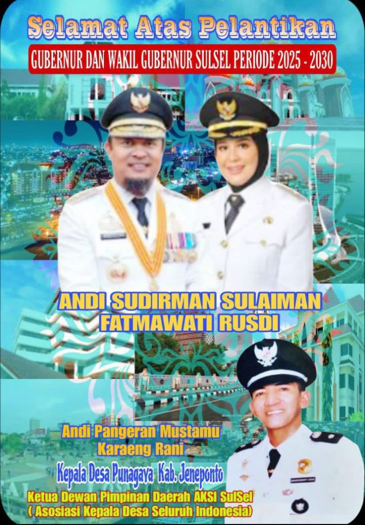 Ucapan Selamat & Sukses Ditulis olehabanggjul22 Feb 202522 Feb 2025Diposkan padaADVETORIAL, Nasional, News, Sulawesi Selatan, Ucapan SelamatTag:Selama Atas Pelantikan Gubernur dan Wakil Gubernur Sulawesi Selatan Periode 2025 - 2030, Sulawesi Selatan Selamat Atas Pelantikan Gubernur dan Wakil Gubernur Sulawesi – Selatan Periode 2025 -2030 SHARE Bagikan pada Facebook(Membuka di jendela yang baru) Facebook Bagikan ke X(Membuka di jendela yang baru) X Bagikan ke Telegram(Membuka di jendela yang baru) Telegram Bagikan ke WhatsApp(Membuka di jendela yang baru) WhatsApp Terkait