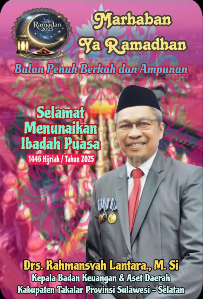 Selamat Menunaikan Ibadah Puasa 1446 Hijŕiah / 2025 Ditulis olehabanggjul27 Feb 2025Diposkan padaNews, Ucapan SelamatTag:Selamat Menunaikan Ibadah Puasa 1446 Hijriah Tahun 2025, Sulawesi Selatan, Takalar SHARE Bagikan pada Facebook(Membuka di jendela yang baru) Facebook Bagikan ke X(Membuka di jendela yang baru) X Bagikan ke Telegram(Membuka di jendela yang baru) Telegram Bagikan ke WhatsApp(Membuka di jendela yang baru) WhatsApp Terkait