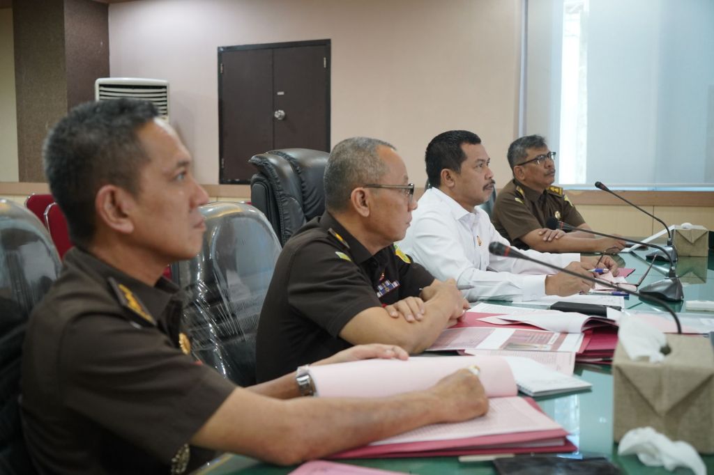 KEJATI SULSEL, Makassar—Kepala Kejaksaan Tinggi Sulawesi Selatan, Agus Salim didampingi Asisten Tindak Pidana Umum Rizal Syah Nyaman, Koordinator pada Pidana Militer, Nurul Hidayat, Kasi Oharda, Alham dan Kasi Penkum Soetarmi melakukan ekspose Restoratif Justice (RJ) terhadap perkara dari Cabang Kejaksaan Negeri Maros di Camba di, Kejati Sulsel, Rabu (12/3/2025).