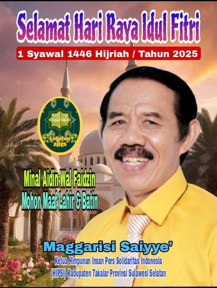 Allahu Akbar, Allahu Akbar, Allahu Akbar, Allahu Akbar Walillah Hilhamd, Selamat Menyambut Hari Kemenangan Ditulis olehabanggjul26 Mar 2025Diposkan padaADVETORIAL, Nasional, Newa, Sulawesi Selatan, Ucapan SelamatTag:Ucapan Selamat Hari Raya Idul Fitri 1 Syawal 1446 Hijriah Tahun 2025 Selamat Hari Raya idul Fitri 1 Syawal 1446 Hijriah Tahun 2025 SHARE Bagikan pada Facebook(Membuka di jendela yang baru) Facebook Bagikan ke X(Membuka di jendela yang baru) X Bagikan ke Telegram(Membuka di jendela yang baru) Telegram Bagikan ke WhatsApp(Membuka di jendela yang baru) WhatsApp Terkait
