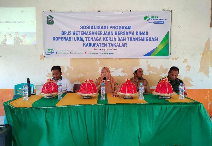 Di tempat yang sama Mappaselleng.SE.MM kepala seksi penyiapan pembangunan pemukiman transmigrasi Dinas koperasi UKM tenaga kerja dan transmigrasi Kabupaten Takalar, mendampingi Kadis UMKM Ketenagakerjaan dan Transmigrasi menyampaikan, bahwa Kegiatan ini merupakan wujud nyata kepedulian Pemerintah agar masyarakat pekerja bisa mendapatkan hak Jaminan Sosialnya, dan Sosialisasi ini tentunya sebagaimana yang diatur dalam UU BPJS Ketenagakerjaan, atau Undang-Undang Nomor 24 Tahun 2011 tentang Badan Penyelenggara Jaminan Sosial (BPJS), yang mengatur tentang pembentukan BPJS Ketenagakerjaan sebagai badan hukum publik yang menyelenggarakan program jaminan sosial ketenagakerjaan bagi seluruh pekerja di Indonesia,” terangnya.